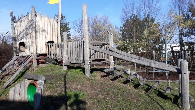 Spielplatz in Brunn am Gebirge provides a large, renovated play area suitable for children of all ages. The park features diverse equipment such as climbing frames, swings, a zip line, water elements, and a sandpit, generally found to be in good condition and set within a natural, shady environment. Drinking water, seating, and fencing are available, though some visitors have reported inconsistencies with restroom facilities and occasional overgrown grass.