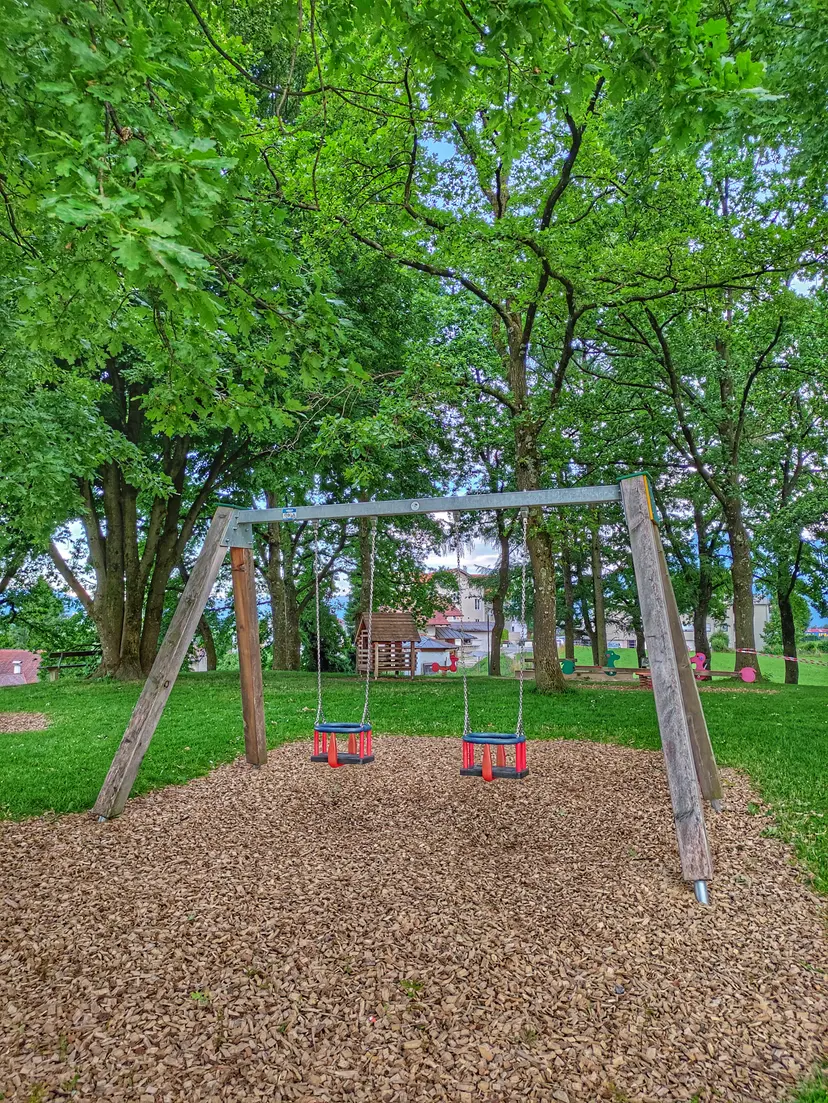Spielplatz am Brandlbichl in Salzburg, Austria offers visitors a pleasant, smaller play area. It is particularly well-suited for younger children up to approximately five years old, featuring equipment designed for this age group. The playground provides ample shade from numerous trees, a quiet atmosphere, and scenic views over the city, also serving as a popular spot for sledding in winter.