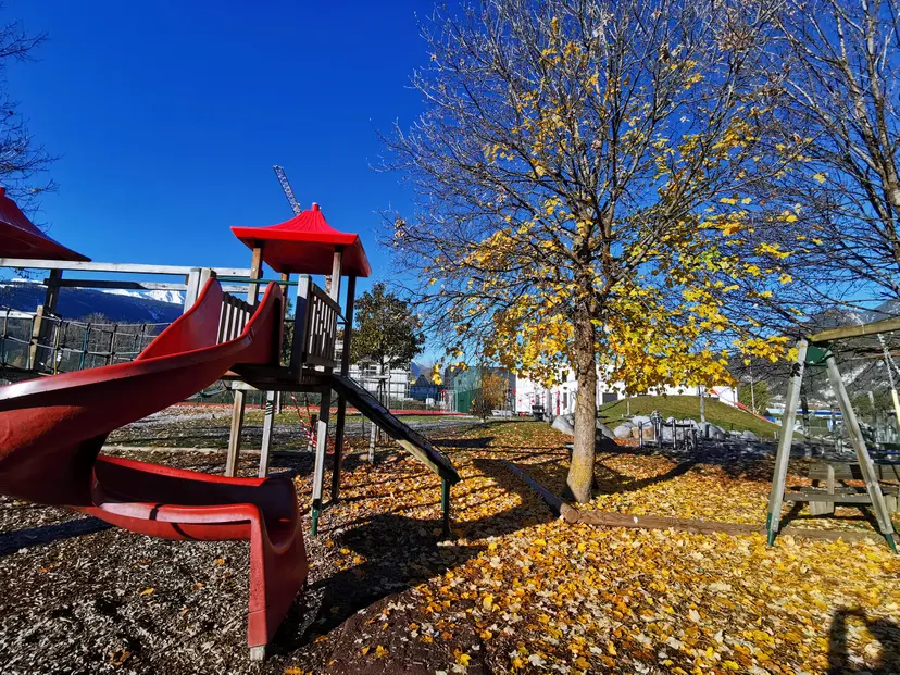 Spielplatz Kematen in Kematen in Tirol offers visitors a large and well-maintained play area. It features diverse equipment suitable for various age groups, including slides, swings, a mini climbing frame, and a water-sand play area, complemented by mountain views. While praised for its cleanliness and convenient proximity to a bakery, some visitors note the absence of restrooms.