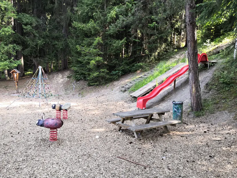Waldspielplatz Hart im Zillertal in Hart im Zillertal offers visitors a well-maintained and spacious play area. It features a variety of equipment, including swings, slides, climbing structures, and an agility course, providing ample entertainment for children. Situated in the forest, the playground benefits from partial shade and includes amenities like benches with tables, making it a pleasant spot for families to relax.