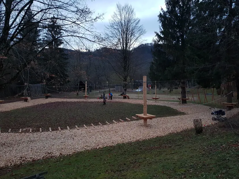 Spielplatz in Grünau im Almtal offers visitors a beautiful and well-equipped play area situated directly beside the Alm river, allowing for water play in summer. It features a variety of attractions suitable for all age groups, including a pump track, slide, zip line, and both low and high ropes courses. While highly praised by children, some visitors suggest adding more seating benches and trash cans for improved convenience.