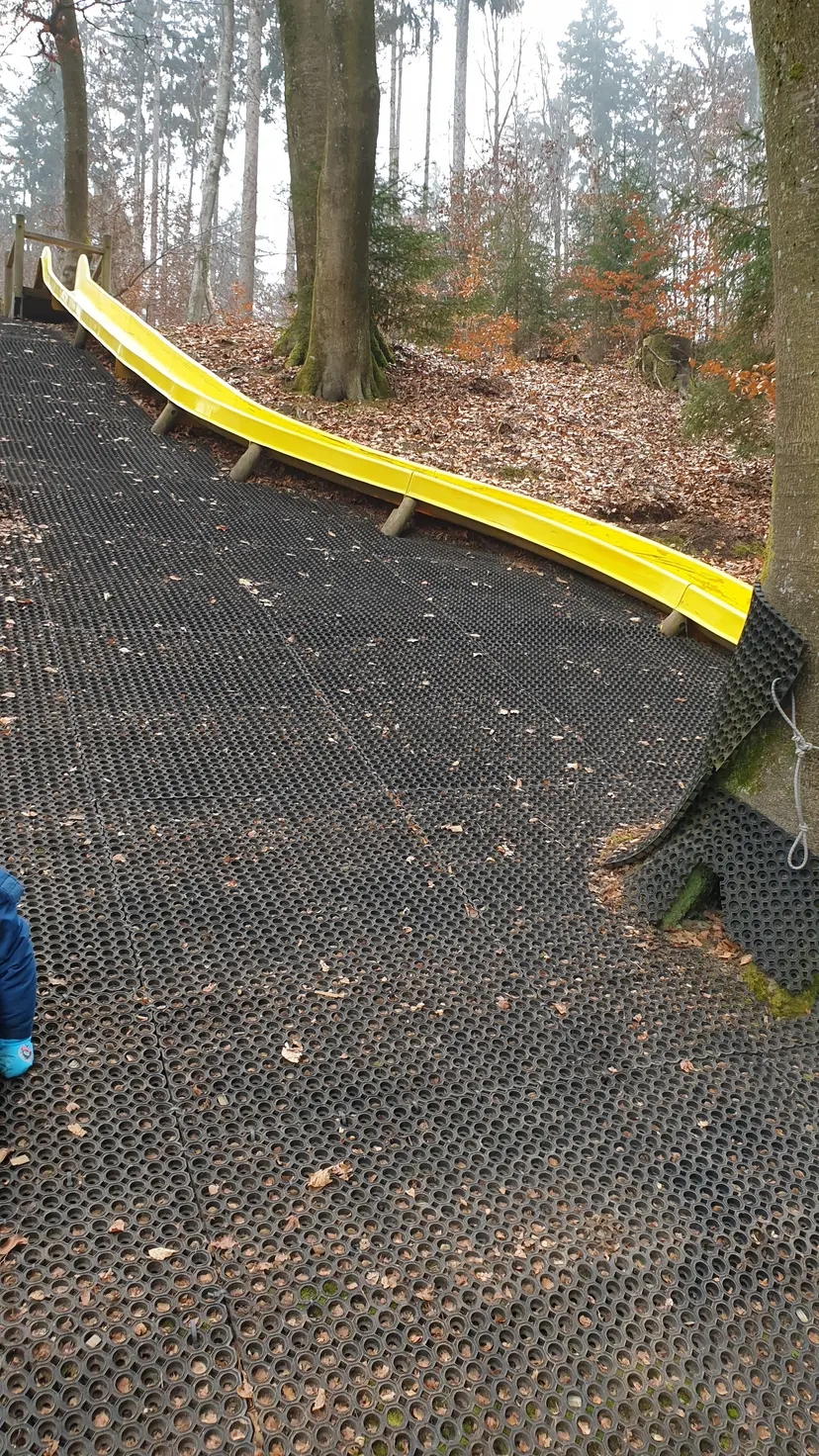 Spielplatz am Florianerweg in Vöcklabruck, Oberösterreich, ist Teil eines kinderfreundlichen Rundwanderwegs mit verschiedenen Erlebnisstationen. Der Weg umfasst zahlreiche Spielmöglichkeiten wie eine Riesenrutsche, Kletterelemente wie ein Spinnennetz, eine Hängebrücke und einen Motorikparcours mit Balancier- und Hörerlebnissen. Besucher schätzen die Vielfalt der Attraktionen entlang des Weges und die gute Erreichbarkeit mit Parkmöglichkeiten am nahegelegenen Seniorenheim, wobei die Rutsche als besonders schnell beschrieben wird.